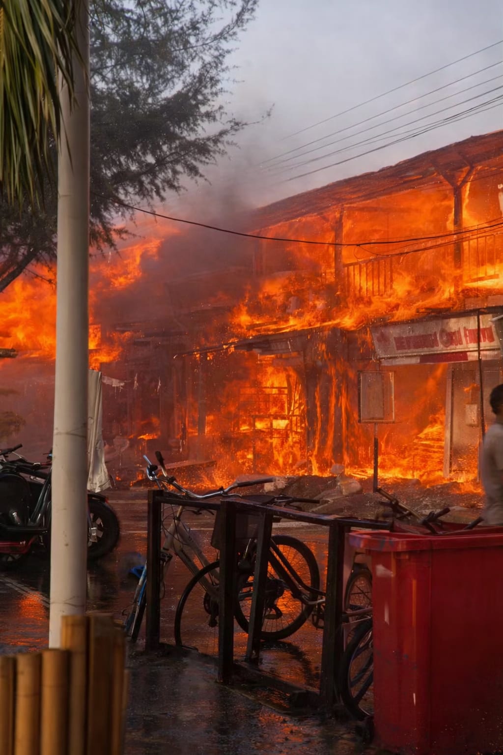 Kobaran api pertama kali muncul dari Sama Sama Reggae Bar. Kencangnya hembusan angin membuat api dengan cepat membesar dan menjalar ke bangunan lain yang berada berdekatan.
